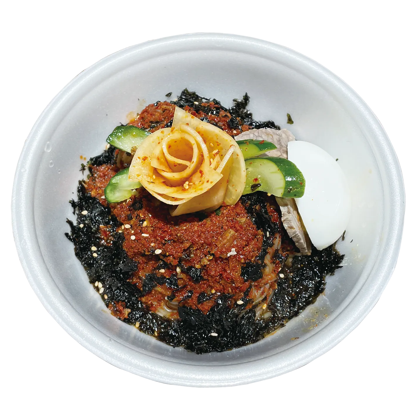 卵、大根、キュウリ、牛肉、豚ひき肉、唐辛子、ゴマ、のり、そば粉、小麦粉、かんすい、ゴマ油、タレ
