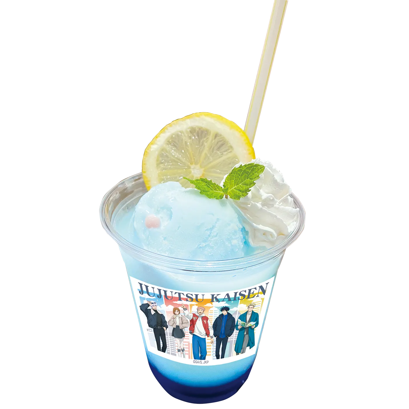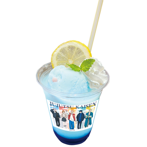 ブルーキュラソー(ノンアルコール)、氷、カルピスウォーター、ホイップクリーム、ラムネアイス、レモンスライス、ミント