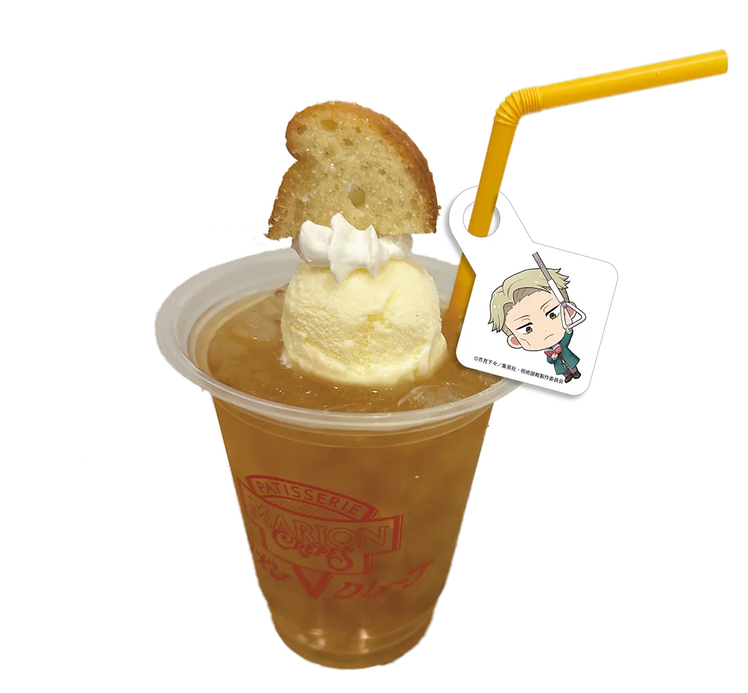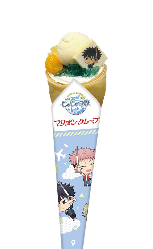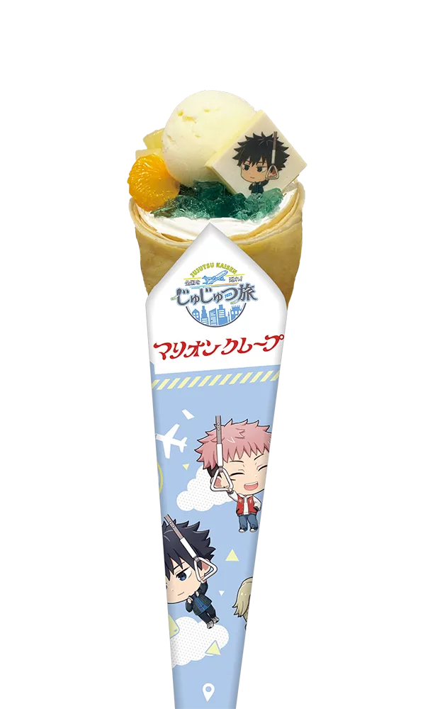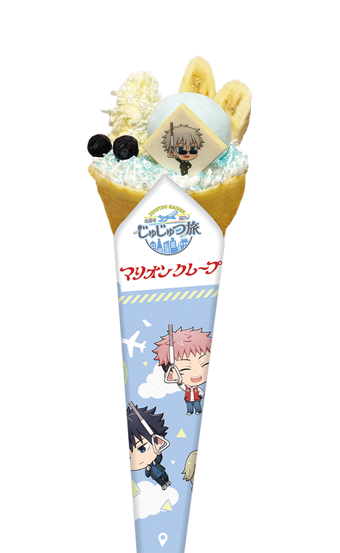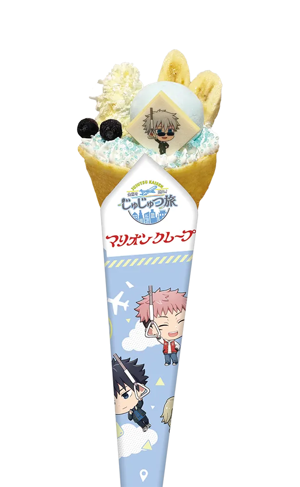 ホイップクリーム、ブルーベリー、バナナ、ラムネアイス、ホワイトけずりチョコレート、ホワイトチョコレート+可食フィルム、ジュエリーシュガー、ココアクッキー